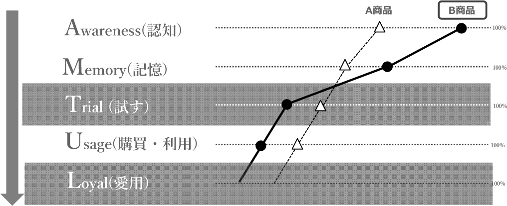 また、一度購買しても、愛用してもらえないと、継続的な購買は保証されないため、「Loyal」化が重要である。このことを、AMTULモデルとして、1996年に提言した。